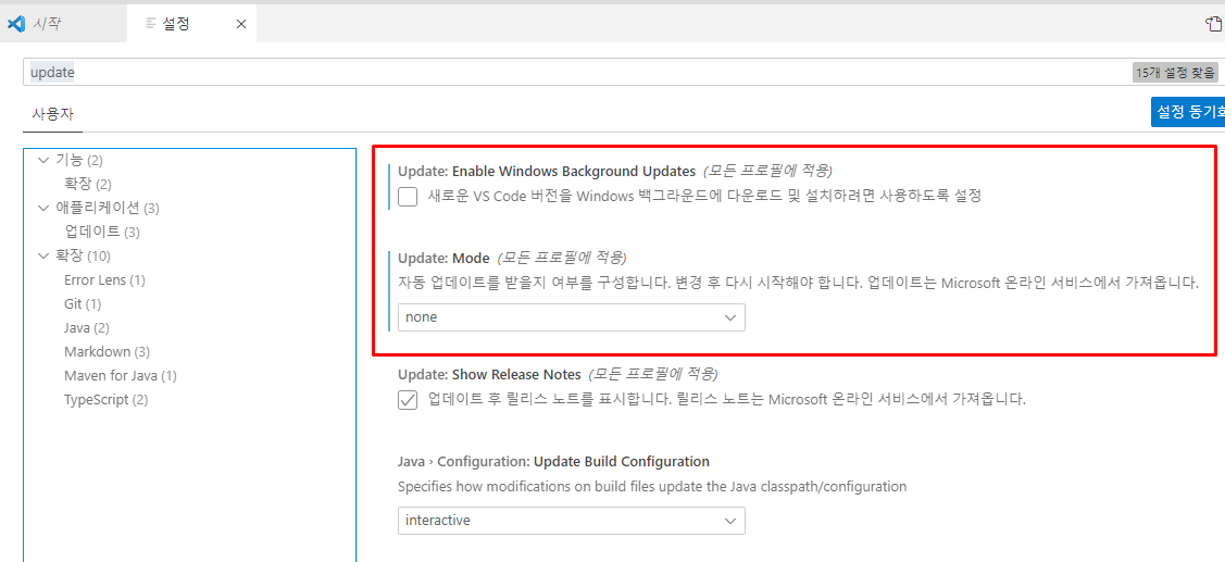 VSCode를 켜고 기다리니 자동업데이트 설정이 되어있어서 업데이트가 되어버렸다