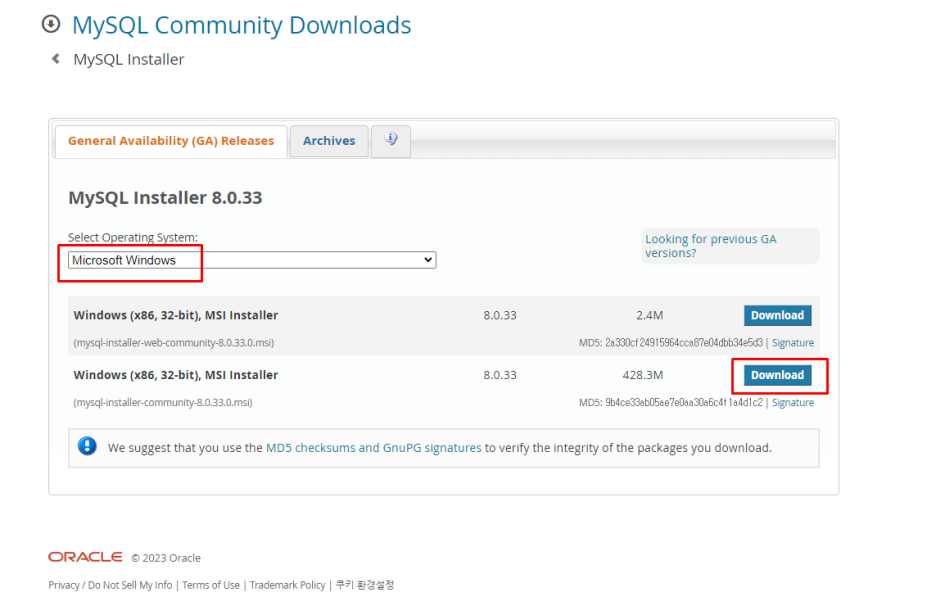 Microsoft Windows 선택 후 Download 선택
