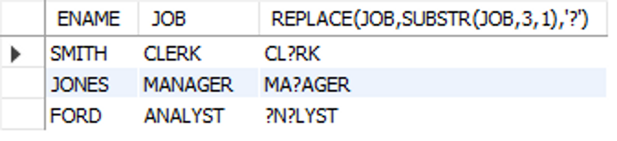 , REPLACE(JOB,SUBSTR(JOB,3,1),'?')