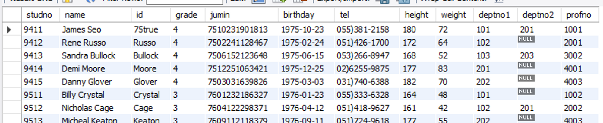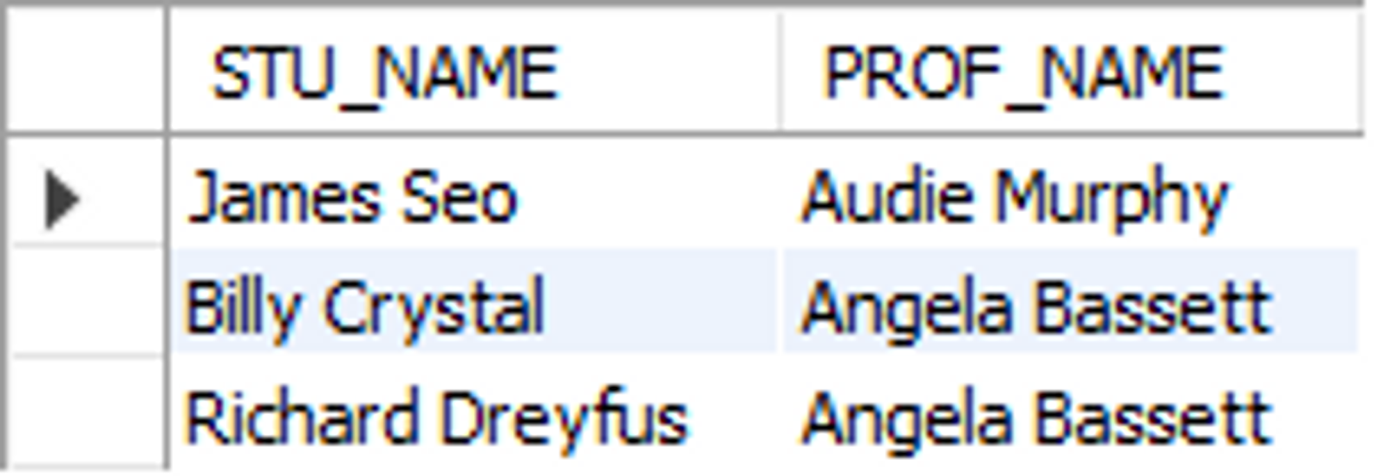 학생 테이블과 교수테이블을 JOIN하여 각각 이름출력(JOIN)