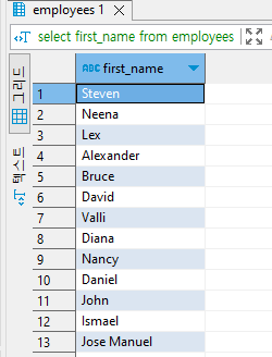 -- select 뒤에는 테이블에서 가져올 컬럼명을 적는다