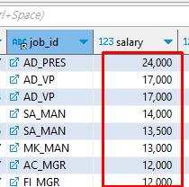 select job_id, sum(salary), count(salary), sum(salary)/count(salary) as 평균연봉