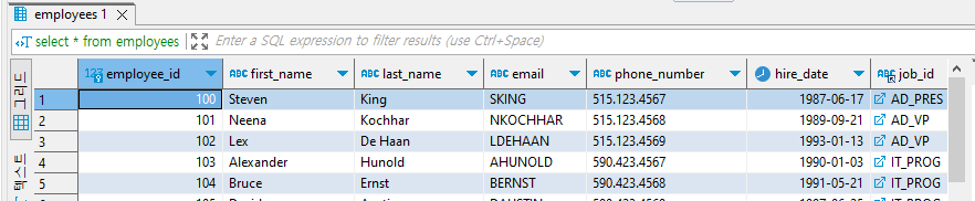 employees 테이블에서 last_name이 King인 사람 조회하기