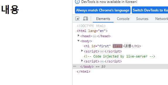 <h1 id="first">내용</h1>