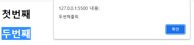 <h1 id="second" ondblclick="alert('두번째클릭')">두번째</h1>